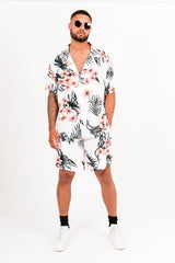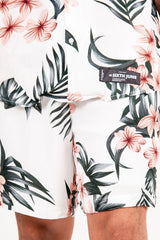 Short imprimé fleur tropical blanc
