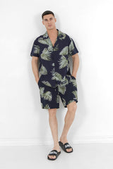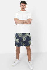 Short fluide motif tropical Bleu foncé