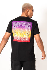 Tshirt manches courtes pour homme de marque Sixth June. Grand imprimé bandana a l'arrière. Logo Sixth June sur la poitrine. Coupe classique. Modèle noir avec imprimé multicolore.