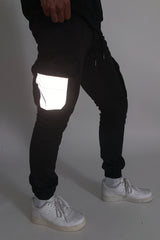 Pantalon de jogging pour homme de marque Sixth June. Poches cargo réfléchissantes avec zip sur chaque jambe, poches latérales. Cordons de serrage à la taille, élastique aux chevilles. Coupe classique. Modèle noir.