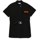 Combishort pour femme de marque Sixth June. Deux poches tactiques au niveau de la poitrine avec patch logo. Ceinture à boucle et fermeture boutonnière. Coupe classique, longueur mini. Modèle noir.