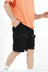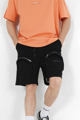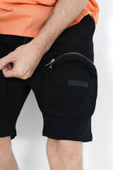 Deux poches avec fermeture à zip à l'avant dont l'une avec un patch en gomme gravé Sith June. Taille élastique avec cordons de serrage, poches latérales, fausses poches arrières.