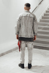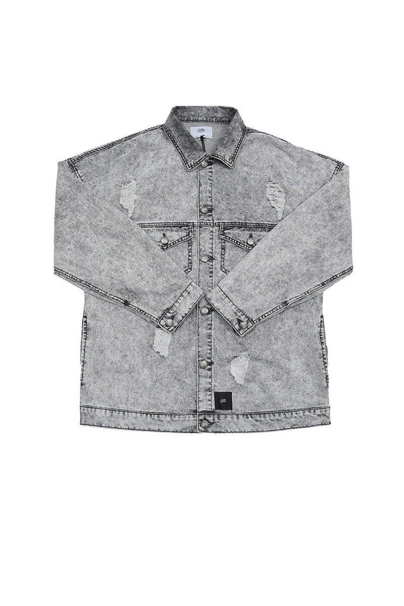 Veste en jean Sixth June Homme. Denim gris. Effet destroy. Poches à rabat avec bouton. Coupe large.