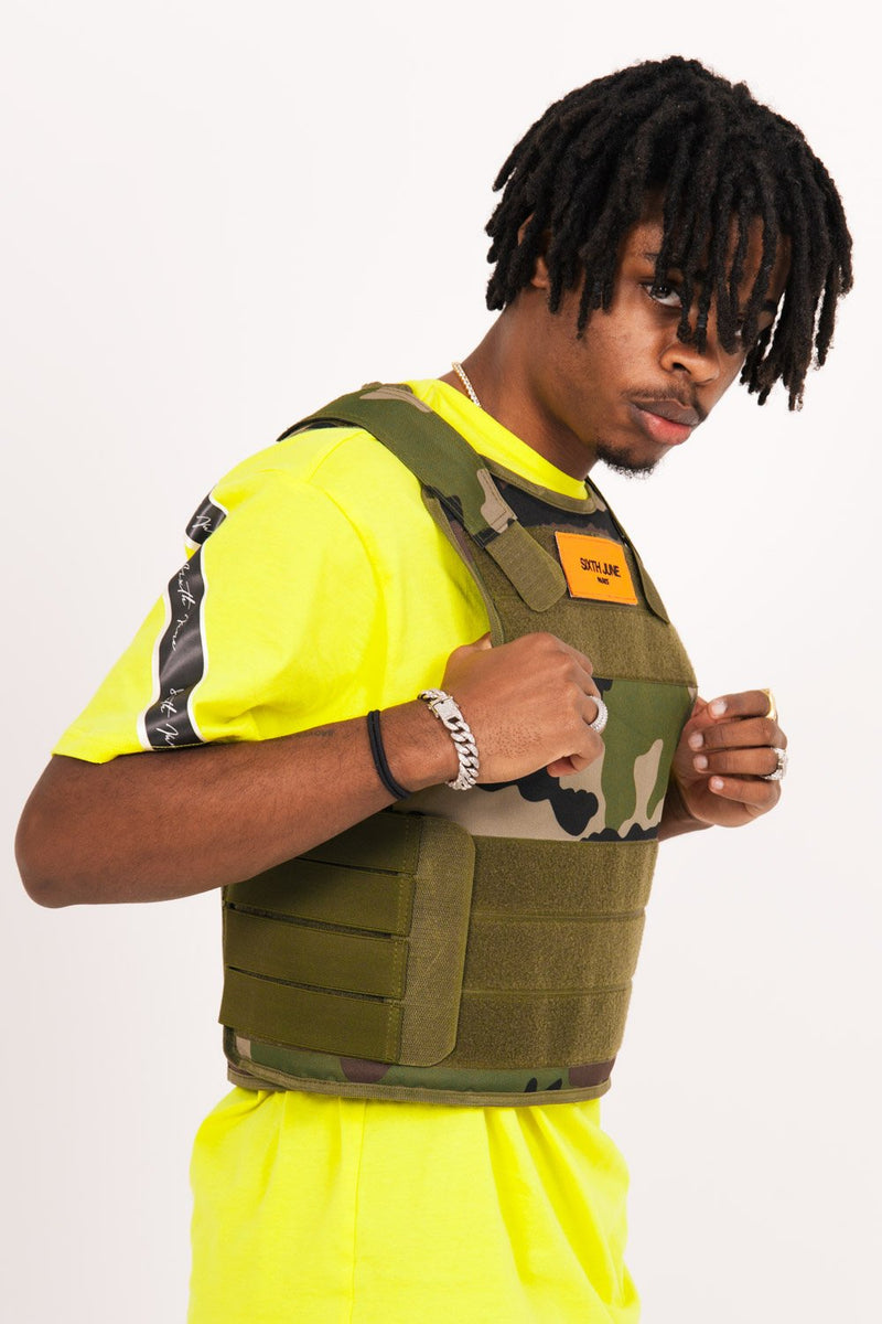 Veste tactique Sixth June sans manches avec patch "Sixth June" à l'avant, imitation gilet pare-balles. Taille unique réglable à l'aide de scratch au niveau des épaules et sur les côtés. Modèle camouflage. Cet article n'est pas un produit professionel et ne protège pas des balles.