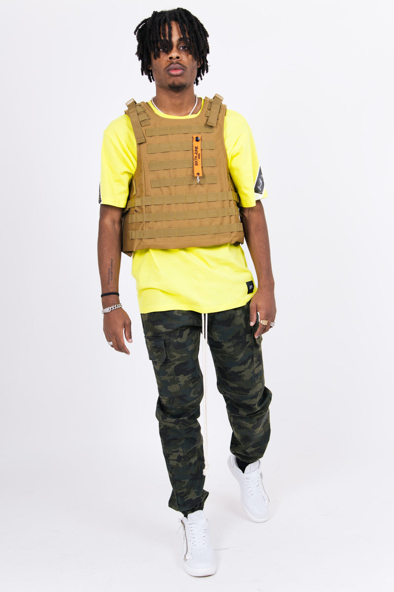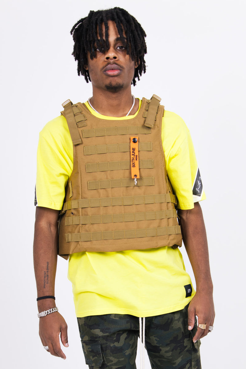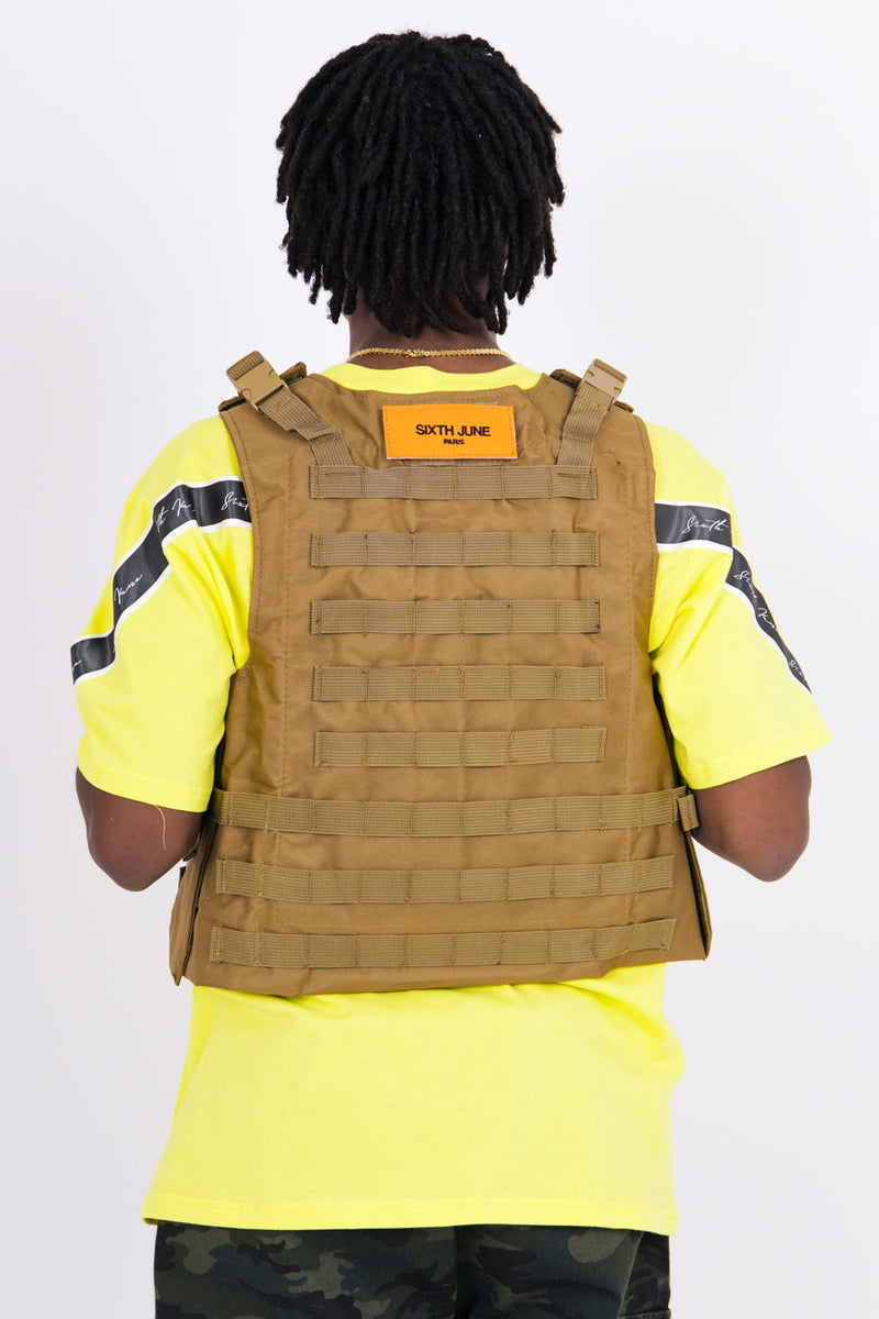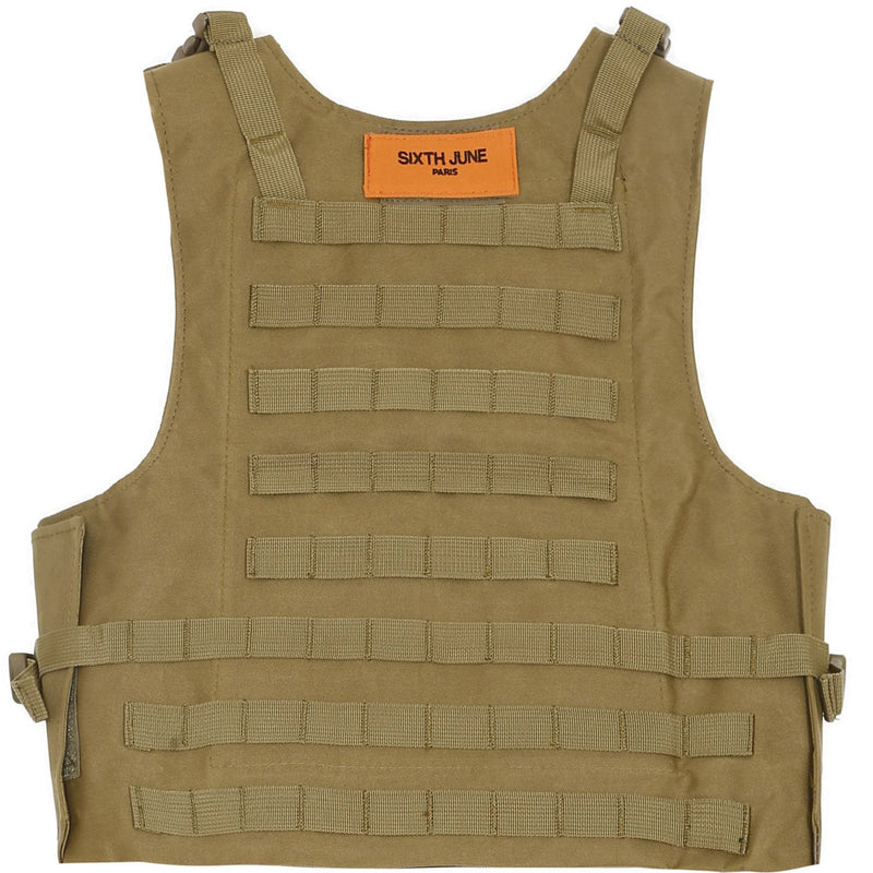 Veste tactique Sixth June sans manches avec patch "Sixth June" à l'arrière, imitation gilet pare-balles. Taille unique réglable sur les côtés et au niveau des épaules par fermetures scratch et fermoirs à clips, porte clés Sixth June Propaganda amovible à l'avant. Modèle kaki. Cet article n'est pas un produit professionel et ne protège pas des balles.