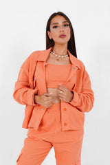 Tissu gaufré, deux poches à rabats à l'avant au niveau de la poitrine.