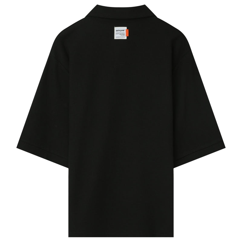 Tissu gaufré, logo et texte tissé sur patch à l'arrière sous le col.