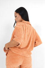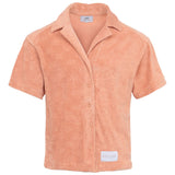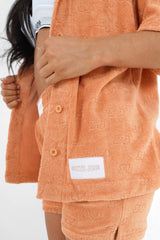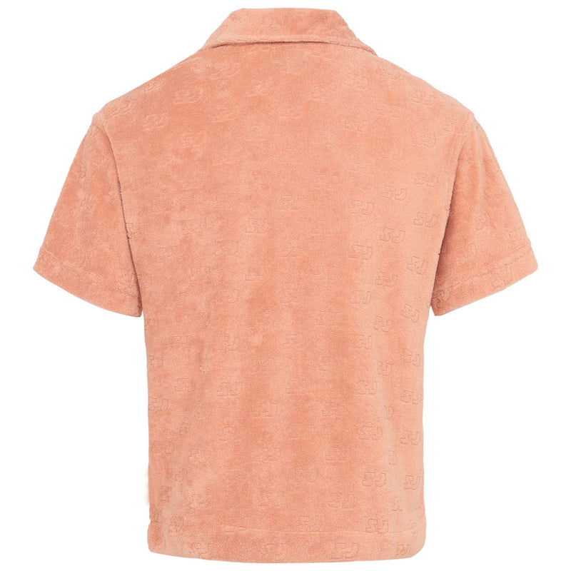 Matière effet serviette de plage avec les initiales SJ en relief sur l'ensemble du tissu. Fermeture centrale à boutons, logo tissé sur patch à l'avant.