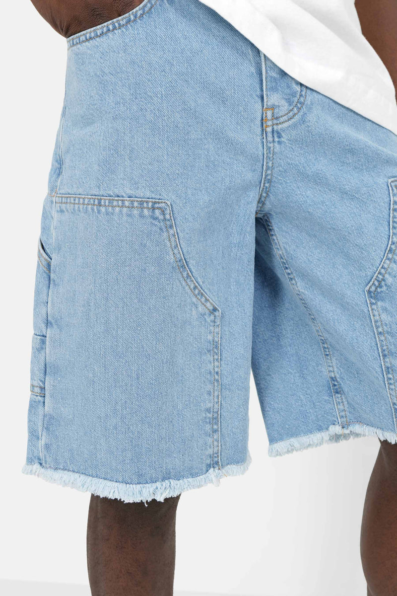 Poches à l'avant et à l'arrière, fermeture boutonnée, passants pour ceinture.